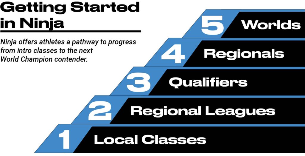 Individuals typically enter the sport through their local ninja gym, where they take classes and learn the ins and outs of the sport.
